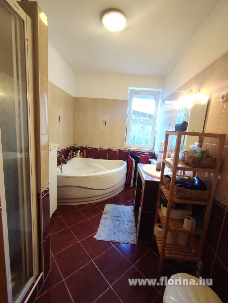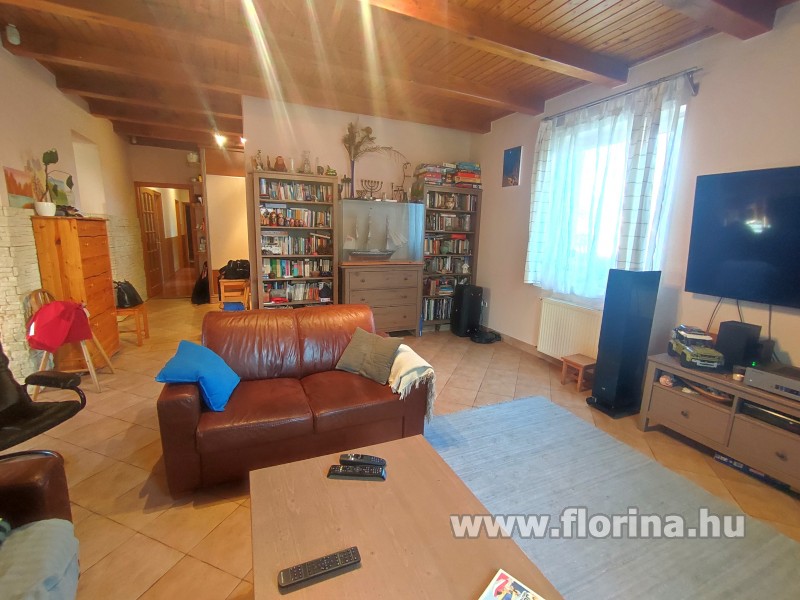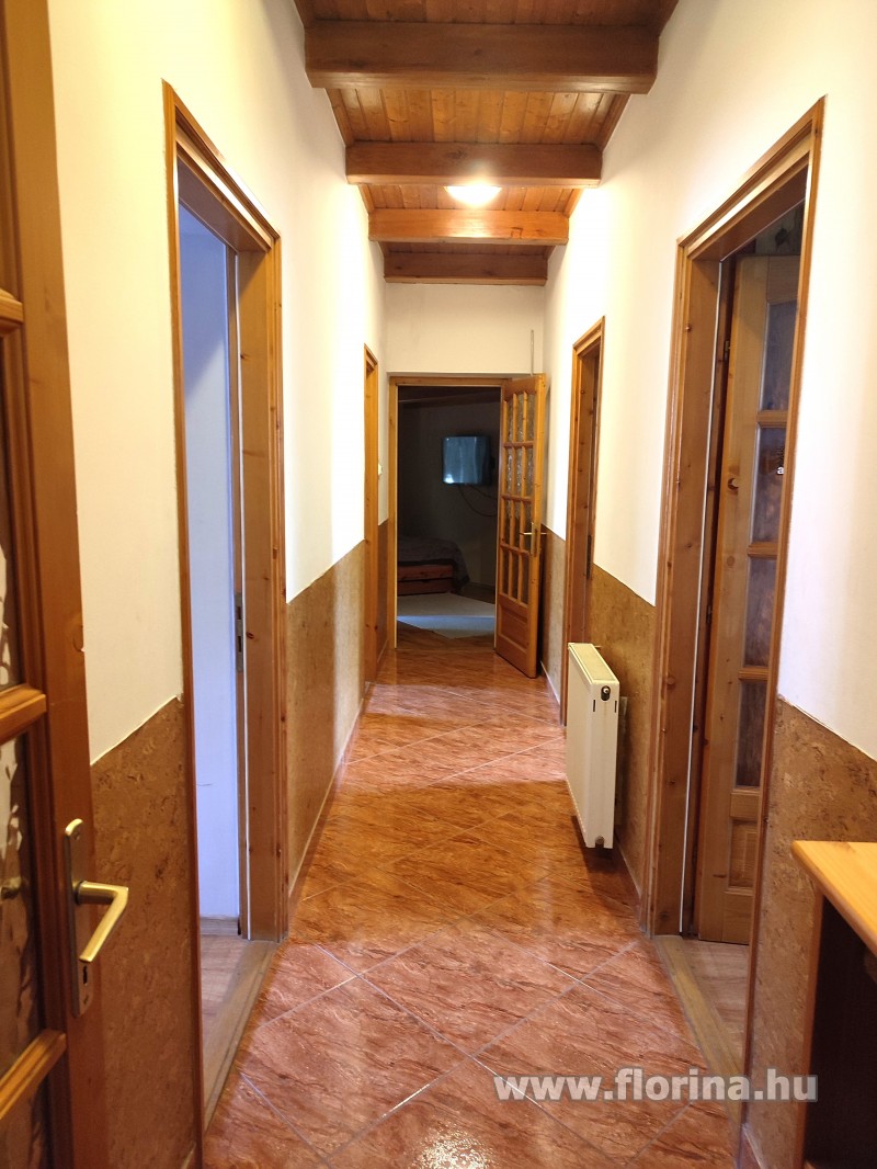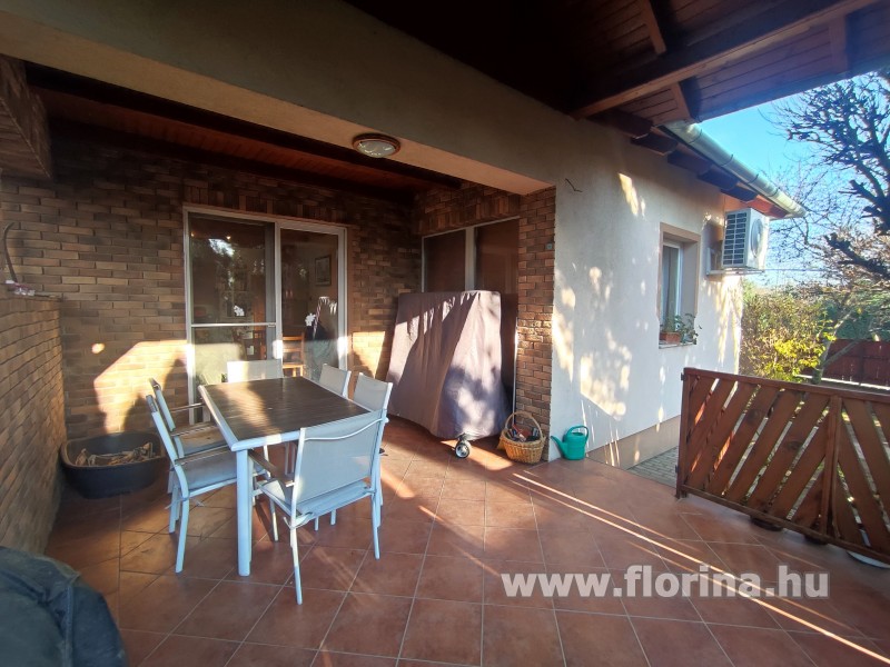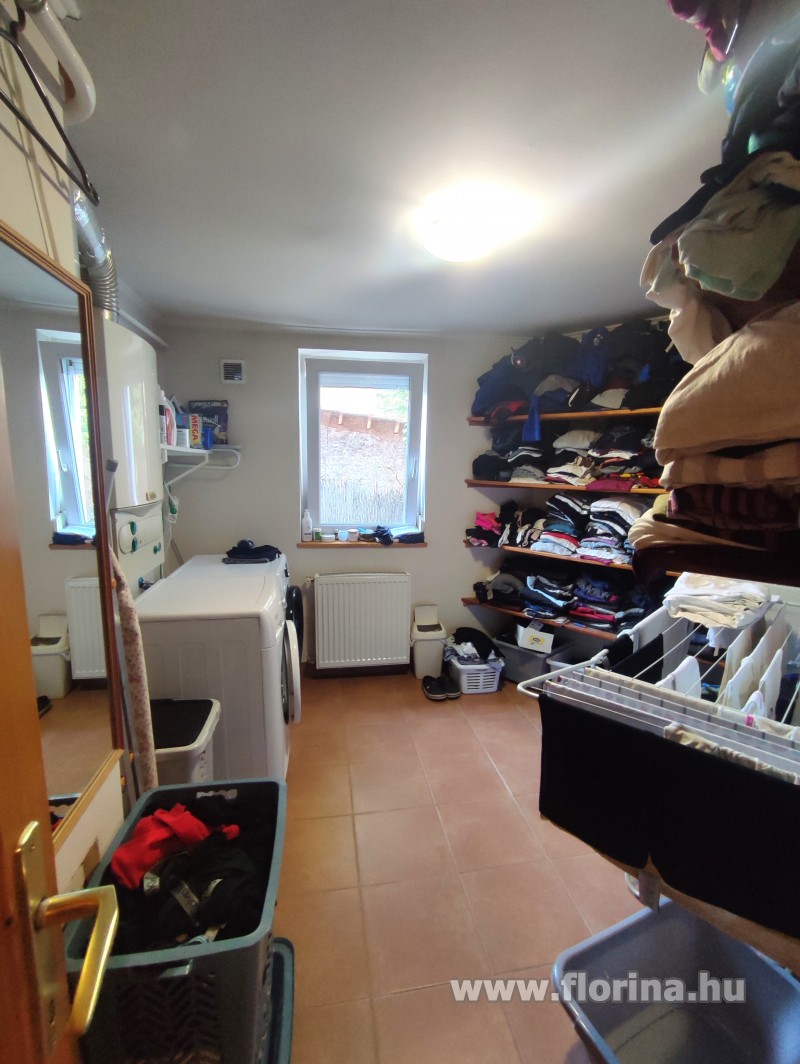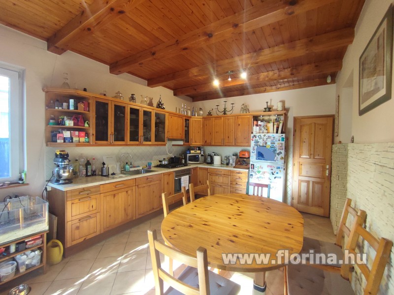 A házban az előszoba igen tágas, ahol a hatalmas gardróbszekrényben rengeteg pakolási hely van. A nappali(24nm) mellett a konyha-étkező(18,5nm) és a nagyobb méretű kamra található. A valódi fa frontos konyhabútor gépesítve(elektromos sütő, gáz főzőlap, elszívó, mosogatógép) a vételár részét képezi. A nappaliból és az étkezőből is a 17,2nm-es, fedett teraszon keresztül a kertbe közvetlenül ki lehet menni.